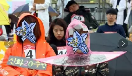 今年还有神话的粉丝穿着雨衣带着神话20周年的牌子去参加。